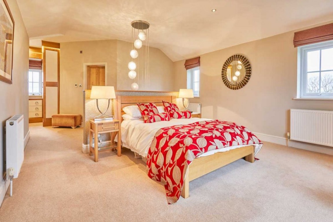 Master bedroom suite with bespoke dressing room, opulent en suite and balcony, guest bedroom with en suite, three double bedrooms and house bathroom.