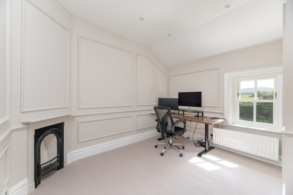 The first floor houses three delightful double bedrooms and family bathroom within the original structure, plus two additional bedrooms and study in the upper extension, including a principal suite with generous en-suite facilities.