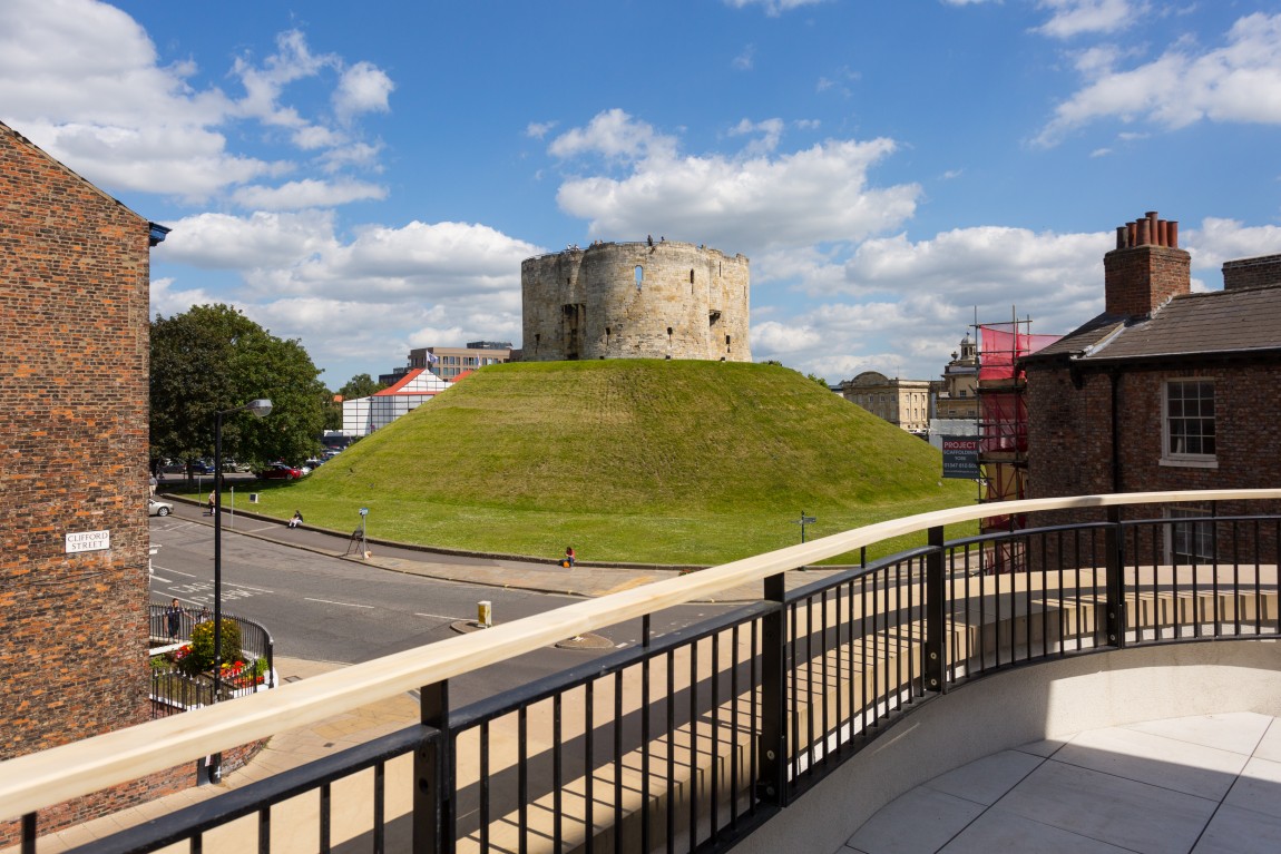 Apartment D , the show apartment, is one of just 7 individually designed apartments that form this exquisite development in the centre of York. The wow factor is the spectacular open plan living area and state of the art the kitchen which has a wraparound terrace looking out onto Clifford’s tower. There are 2 generous en-suite double bedrooms and a practical utility room.