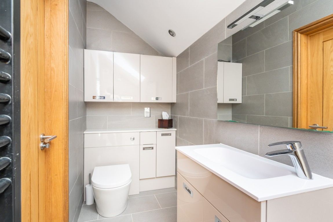 The master bedroom is of good size with built in wardrobes, ensuite shower room and W.C. and additional storage cupboard. There are two further double bedrooms (one with built in wardrobes), a second storage cupboard and a house bathroom.