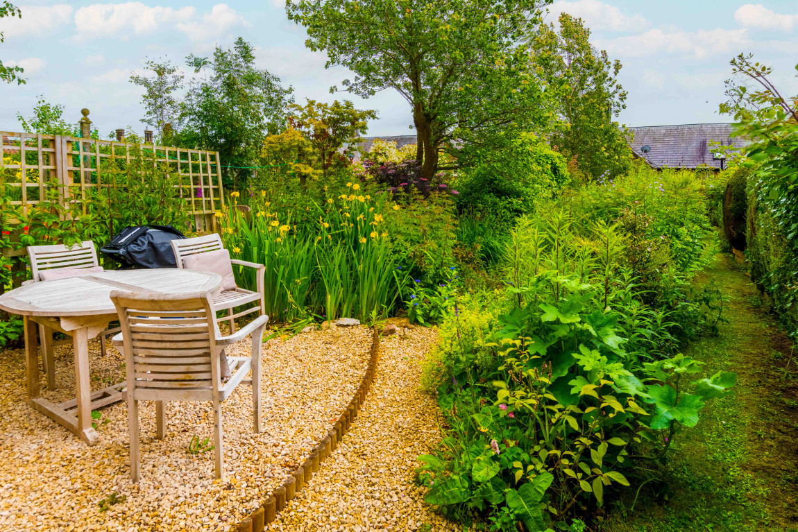 Pretty garden to the front of the house and a private landscaped garden to the rear, seating area off the kitchen and one further up the garden and a garden room which is currently used as bedroom three.