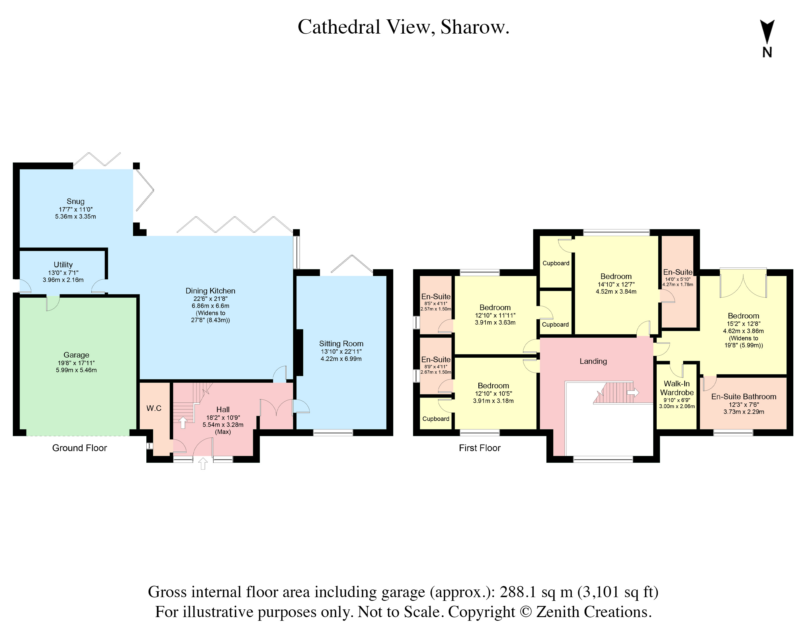 Located in the pretty and convenient village of Sharow, Cathedral view is a beautiful, modern and spacious family home. The ground floor is off a large entrance hallway with a galleried landing above and is made up of a stylish kitchen / dining area with views over the garden, a snug, separate sitting room and utility. All of the reception rooms lead out onto the garden and are flooded with natural light.