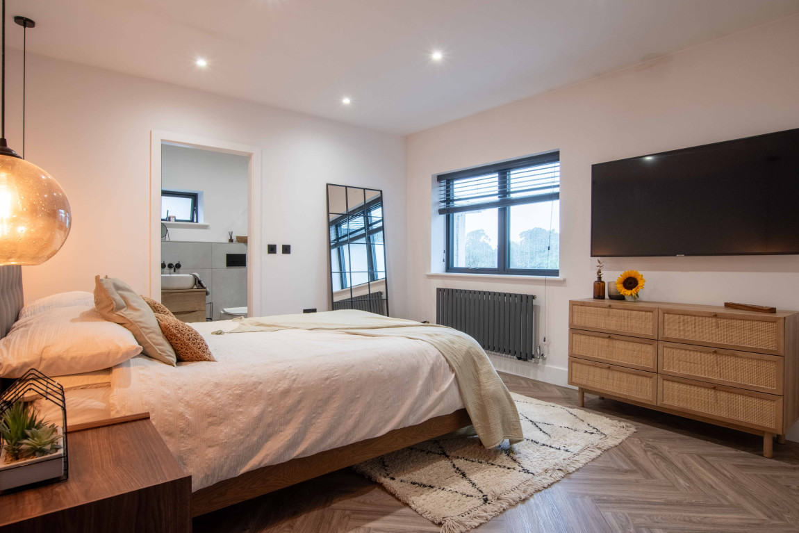 Master bedroom with ensuite and dressing room, double bedroom with ensuite and walk in wardrobe and two further double bedrooms with ensuite bathrooms.