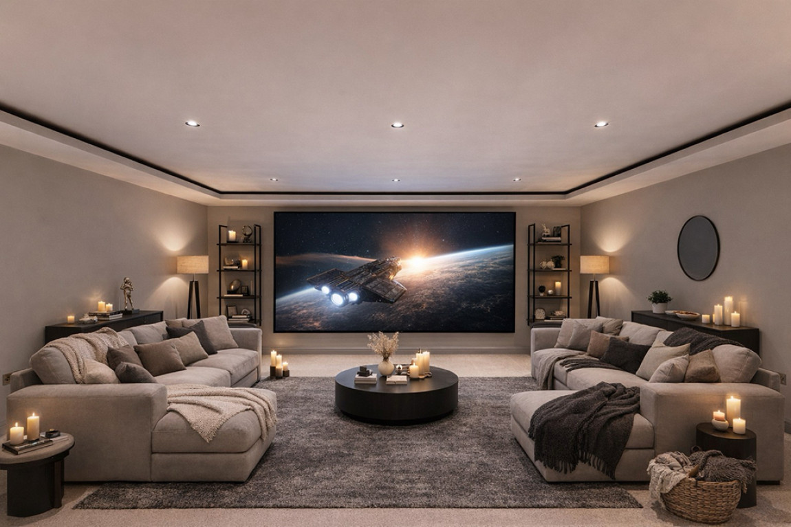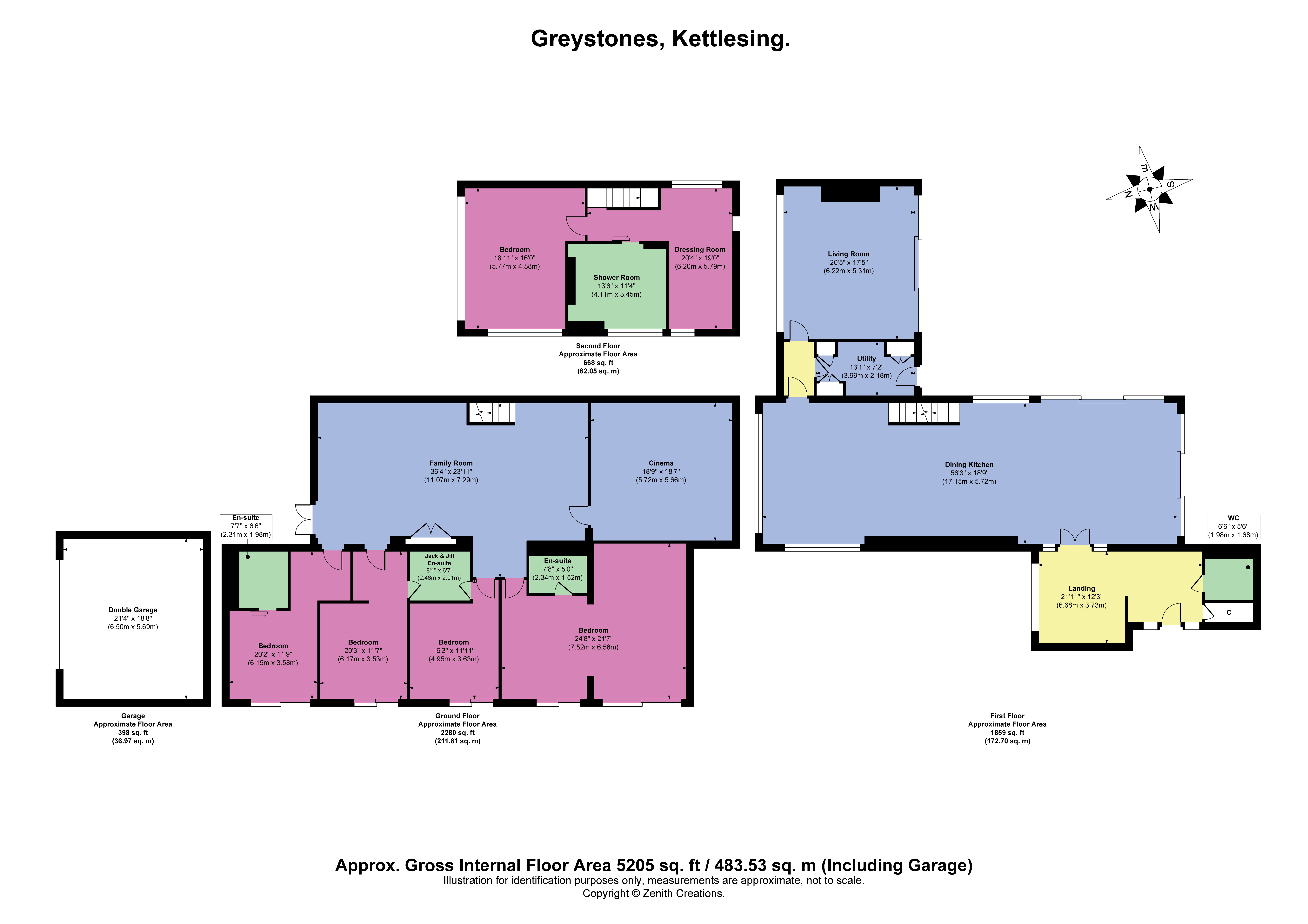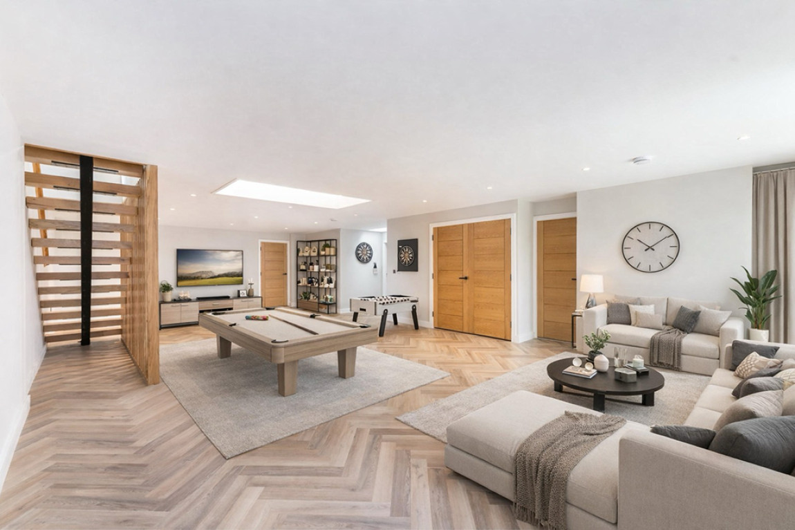Three double bedrooms with ensuite, one further bedroom, family room and cinema room.