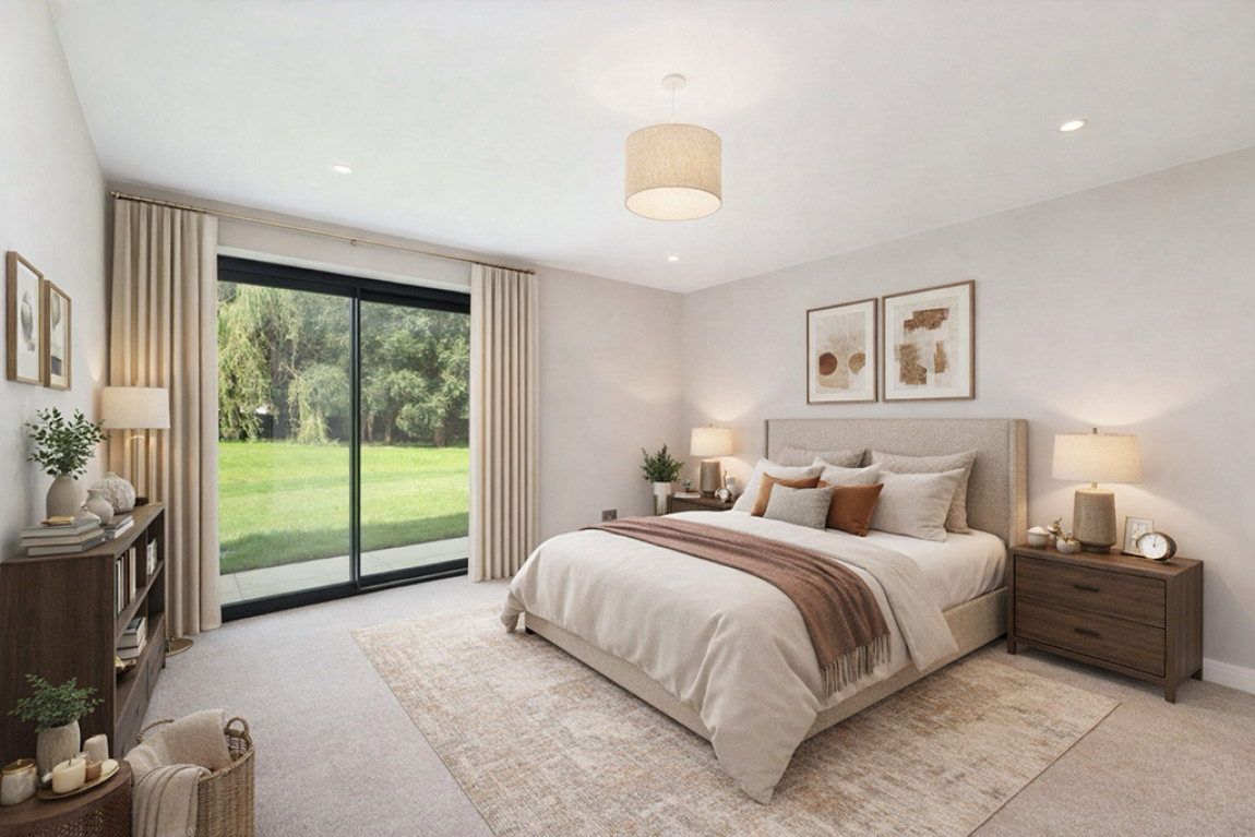 The remaining bedrooms, strategically located on the ground floor, offer direct access to the vibrant and glorious gardens that wrap around the property, providing a seamless indoor-outdoor living experience, especially during the summer months.