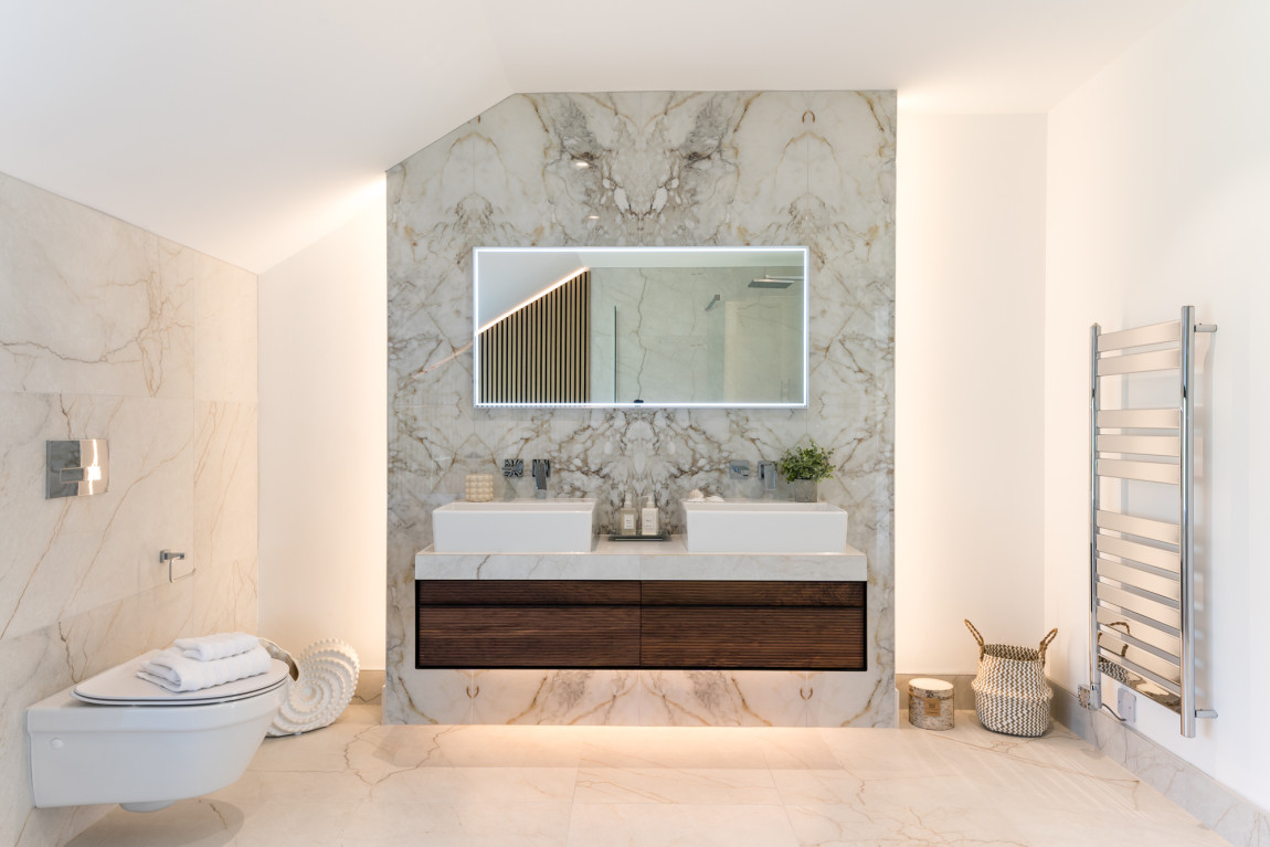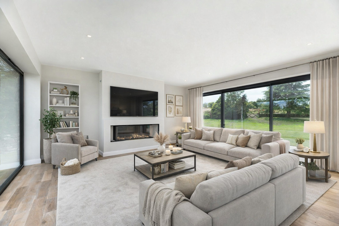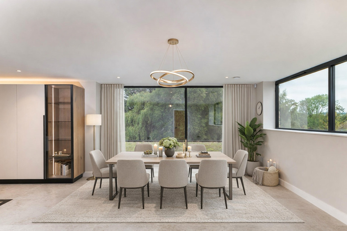 At the heart of Greystones lies a captivating focus on size and volume, with open-plan and double-height living spaces that are further enhanced by the expansive glass that envelope the primary elevations. This thoughtful architectural approach not only maximizes the sense of space and light but also seamlessly integrates the property with its picturesque surroundings.