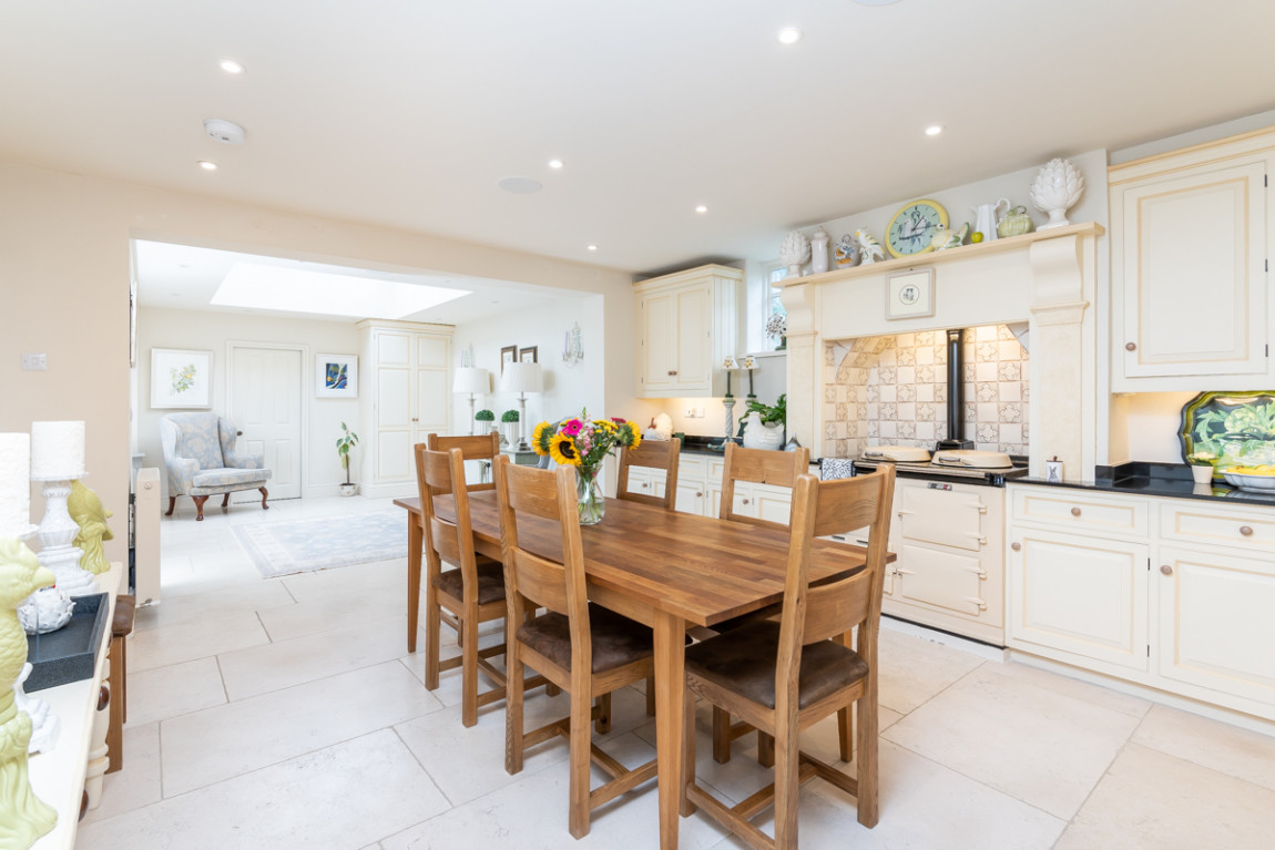 The property has been extended by the current owners to create the perfect family home. The large sash windows let light flood in creating a bright and airy atmosphere. Both reception rooms have original feature fireplaces and working fires, perfect for those cosy winter nights in. The kitchen is bespoke made and has an oil-fired traditional Aga in keeping with the feel of the property. The utility room is located off the kitchen and offers additional storage, space and plumbing for a washing machine and tumble dryer, space for a fridge freezer and for an electric oven.