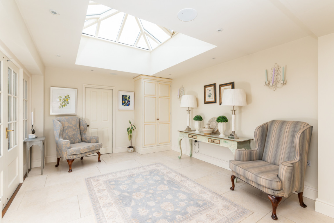 The property is immaculately presented and has a traditional tiled front entrance hall, two formal receptions rooms, breakfast kitchen with french doors opening out on to the garden and lantern roof window, two further reception/family rooms and a utility room and cloakroom.