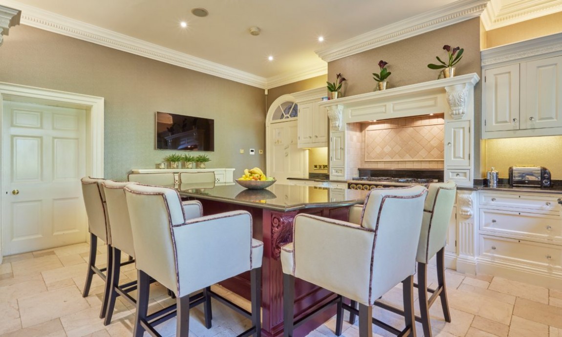 The ground floor has an impressive reception hall with grand staircase and access to the principal reception rooms, which all face south and look on to the highly private garden. The drawing room has an elegant bay window that floods the room with light and the dining room has French doors leading out on the terrace. Both of these have an open fire. The kitchen is large enough for the family to use day to day for dining and the family room is perfect for chilling and relaxing. All the bedrooms are excellent in size, six of them being ensuite, the bathrooms are fabulous and the second floor has been converted in to excellent space ideal for children with their own TV snug area.