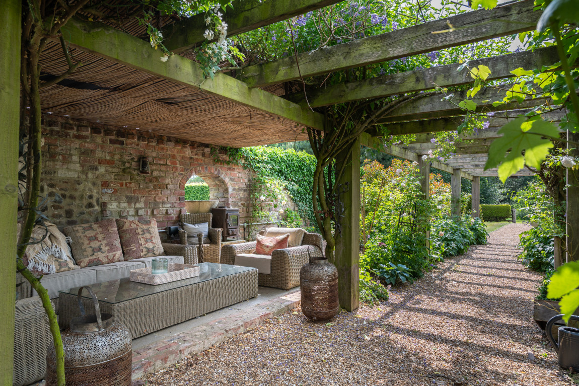 Gorgeous lawned gardens surrounding the property, with an orchard, vegetable patch, herbaceous beds and borders, woodlands, and paddocks. Loggia, pergolas and a number of terraces and outside entertaining areas.